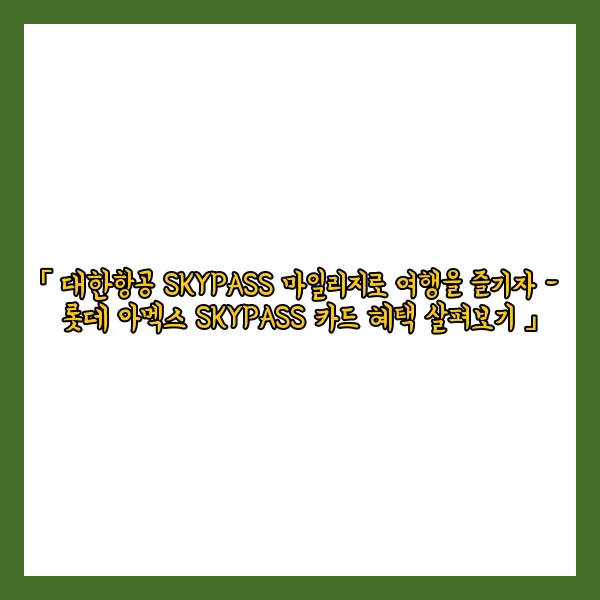 여러분, 안녕하세요! 오늘은 대한항공 SKYPASS 마일리지를 활용해 더욱 풍성한 여행을 즐길 수 있는 방법을 소개해 드리려 합니다. 그 중에서도 롯데 아멕스 SKYPASS 카드의 다채로운 혜택을 자세히 살펴보겠습니다. 기대되시나요? 💫