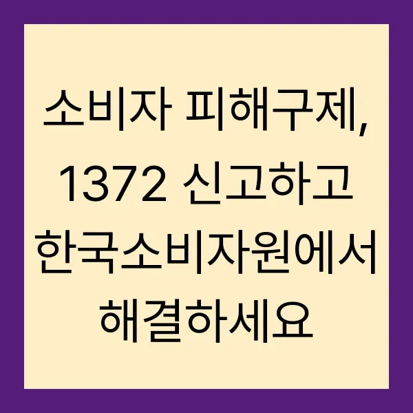 소비자 피해! 생각만 해도 머리 아프시죠? 😥 하지만 이제 걱정 마세요! 똑소리 나는 해결사, 한국소비자원 1372가 든든하게 곁을 지켜드립니다. 복잡한 절차, 막막한 법률 문제, 혼자 해결하려니 눈앞이 깜깜하다면? 지금 바로 1372를 통해 여러분의 권리를 되찾으세요! 피해구제 신청부터 분쟁조정까지, 한국소비자원과 함께라면 어떤 문제든 깔끔하게 해결할 수 있습니다. 똑똑한 소비생활, 이제 한국소비자원 1372와 함께 시작하세요!