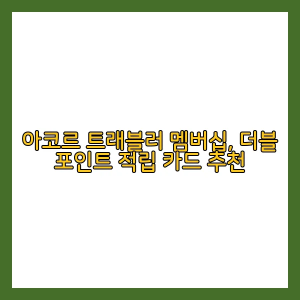 여행의 즐거움은 다양한 혜택과 함께 배가됩니다. 아코르 트래블러 멤버십과 함께 사용할 수 있는 카드로 더블 포인트 적립을 통해 여행 비용을 절감하는 방법을 소개합니다!