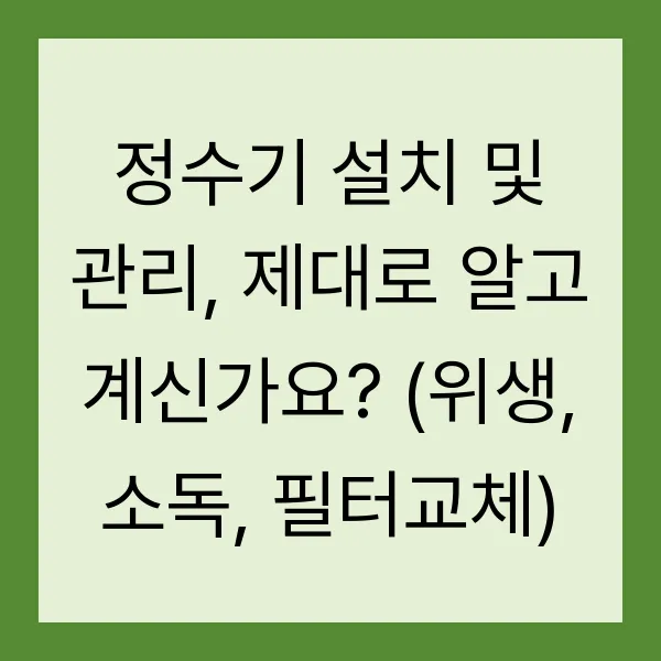 깨끗한 물, 건강한 삶의 시작입니다! 정수기 설치부터 관리까지, 제대로 알고 실천하면 안전하고 건강한 물을 마실 수 있습니다. 함께 노력해서 건강한 물 마시는 습관, 만들어 보자고요!