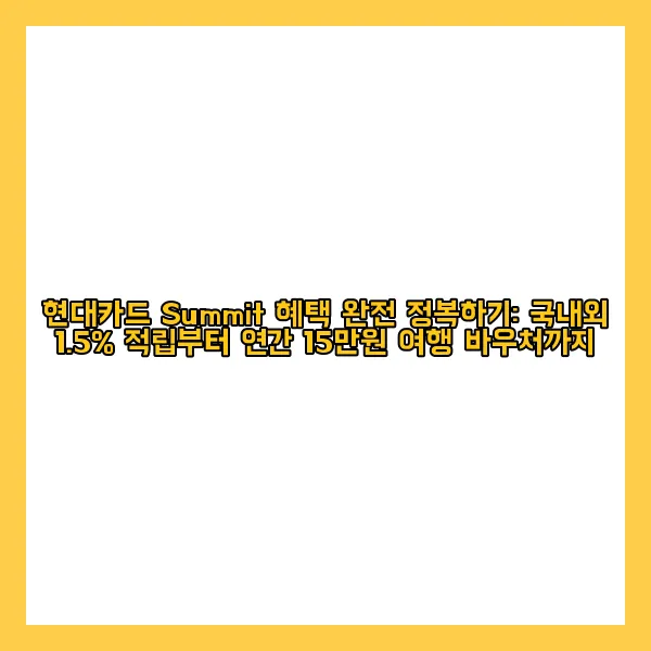 현대카드 Summit 혜택 완전 정복하기: 국내외 1.5% 적립부터 연간 15만원 여행 바우처까지