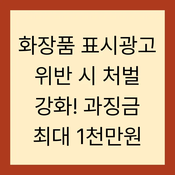 화장품 광고, 정말 괜찮을까요? 소비자를 유혹하는 매력적인 문구 뒤에 숨겨진 함정! 표시광고 위반 시 최대 1천만 원의 과징금 폭탄을 맞을 수도 있다는 사실, 알고 계셨나요? 화장품법 위반 유형부터 처벌 기준, 그리고 기업의 주의 의무까지 꼼꼼하게 살펴보고, 안전한 화장품 시장을 만들어 갑시다! (메인 키워드: 화장품 표시광고, 과징금, 처벌 강화, 서브 키워드: 화장품법 위반, 소비자 보호, 기업 주의 의무)