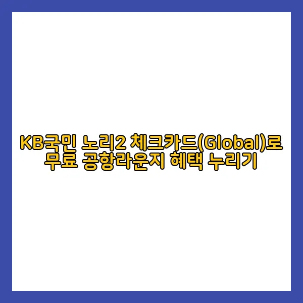 KB국민 노리2 체크카드(Global)는 신용카드 수준의 다양한 혜택을 제공하면서도 연회비가 없는 매력적인 카드입니다. 이 카드는 크게 세 가지 종류로 나뉘지만, 오늘 제가 소개할 카드는 특별히 “Global” 타입입니다. 이 카드의 가장 큰 특징은 공항라운지 무료 이용라는 독특한 혜택이 있다는 점입니다! 공항에서 편안하게 대기할 수 있는 기회를 제공하니, 여행을 자주 하시는 분들께는 더욱 적합한 카드가 아닐까 싶습니다.