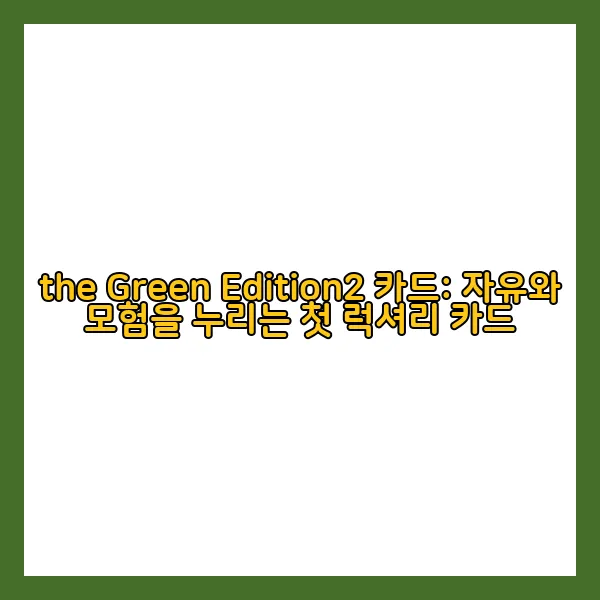 자유와 모험을 즐기는 나만의 첫 럭셔리 카드, the Green Edition2를 소개합니다! 이 카드는 화려하고 개성 넘치는 디자인부터 다양한 혜택과 특별한 경험으로 가득해 프리미엄 라이프를 누리고 싶은 고객들의 눈길을 사로잡고 있죠. 여러분도 함께 자유와 모험의 세계로 출발해 보시는 건 어떨까요? :)