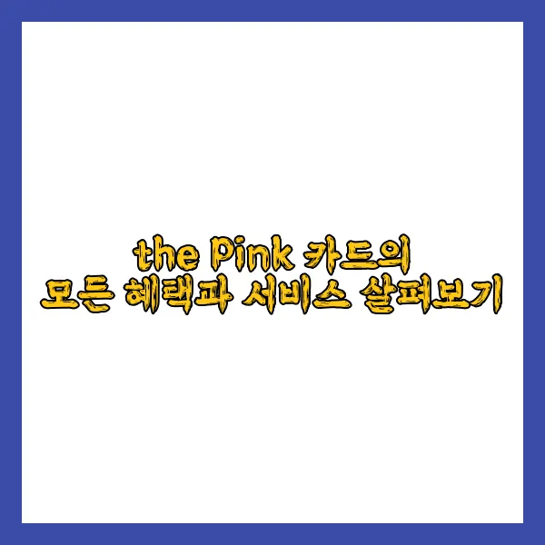 안녕하세요, 오늘은 프리미엄 구매 고객들의 최애 카드로 꼽히는 the Pink 카드의 특별한 혜택과 서비스를 자세히 살펴보겠습니다! 이 카드는 마치 스타와 셀럽들이 사용하는 것처럼 VIP 대우를 누릴 수 있는 초호화 럭셔리 카드랍니다. 지금부터 the Pink 카드만의 놀라운 혜택들을 하나하나 확인해 볼까요?